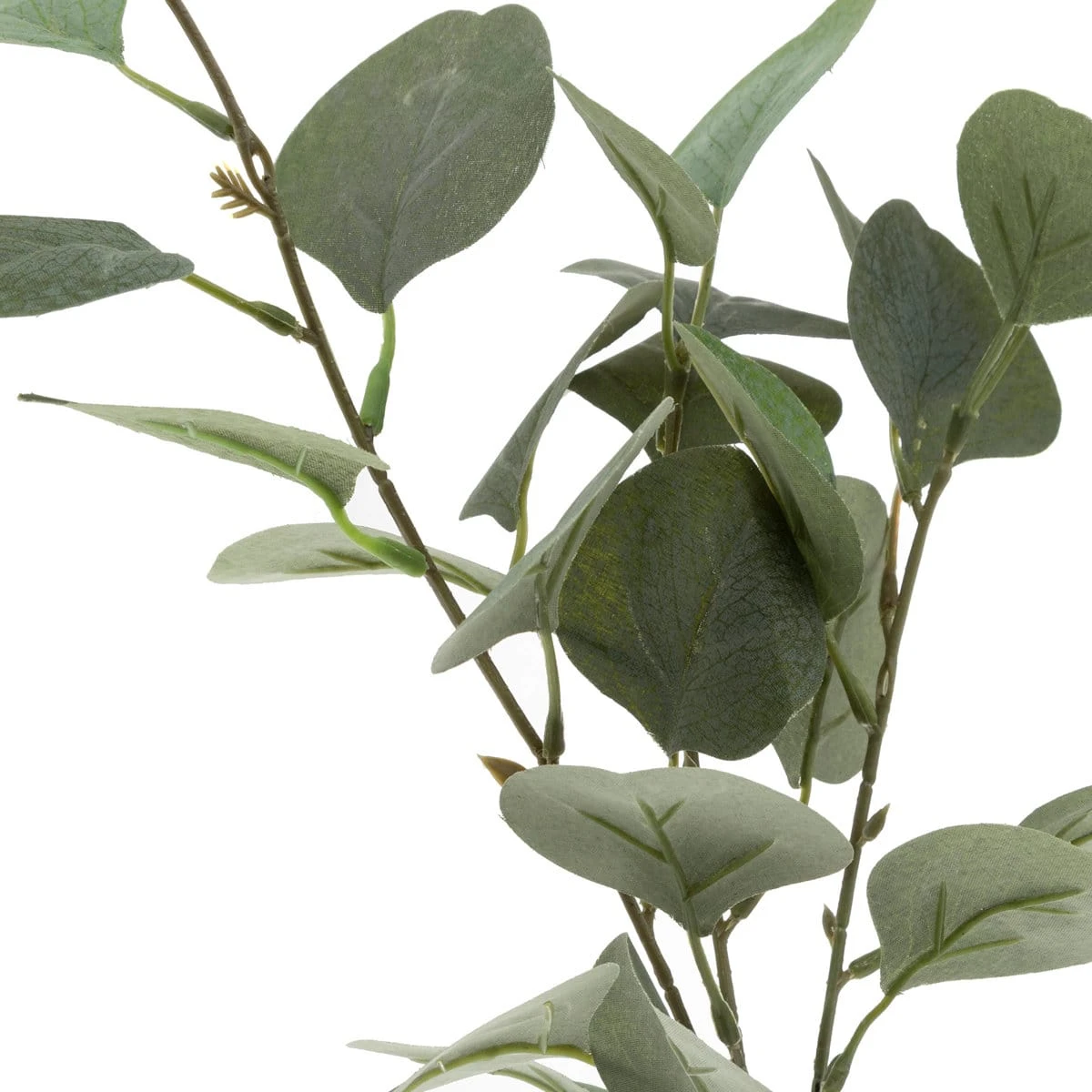 Ein künstlicher Eukalyptus-Zweig in einer Glasflasche der Atmosphera-Marke Créateur d’Intérieur – ein kleines Kunstwerk, das wie lebendig aussieht.