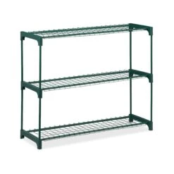 Die Pflanzenbank schafft endlich den nötigen Platz, um Ihre geliebten Blumen und Pflanzen dekorativ zu präsentieren. Gestalten Sie Ihre persönliche kleine Pflanzenecke in Ihrer Wohnung. Die grüne Pflanzentreppe besteht aus Kunststoff und zwei Gitterablagen aus Metall. Das schlichte Design der Blumenbank fügt sich überall gut ein. Der Aufbau geht dabei kinderleicht von der Hand – einfach Zusammenstecken, schon ist das Pflanzregal einsatzbereit.